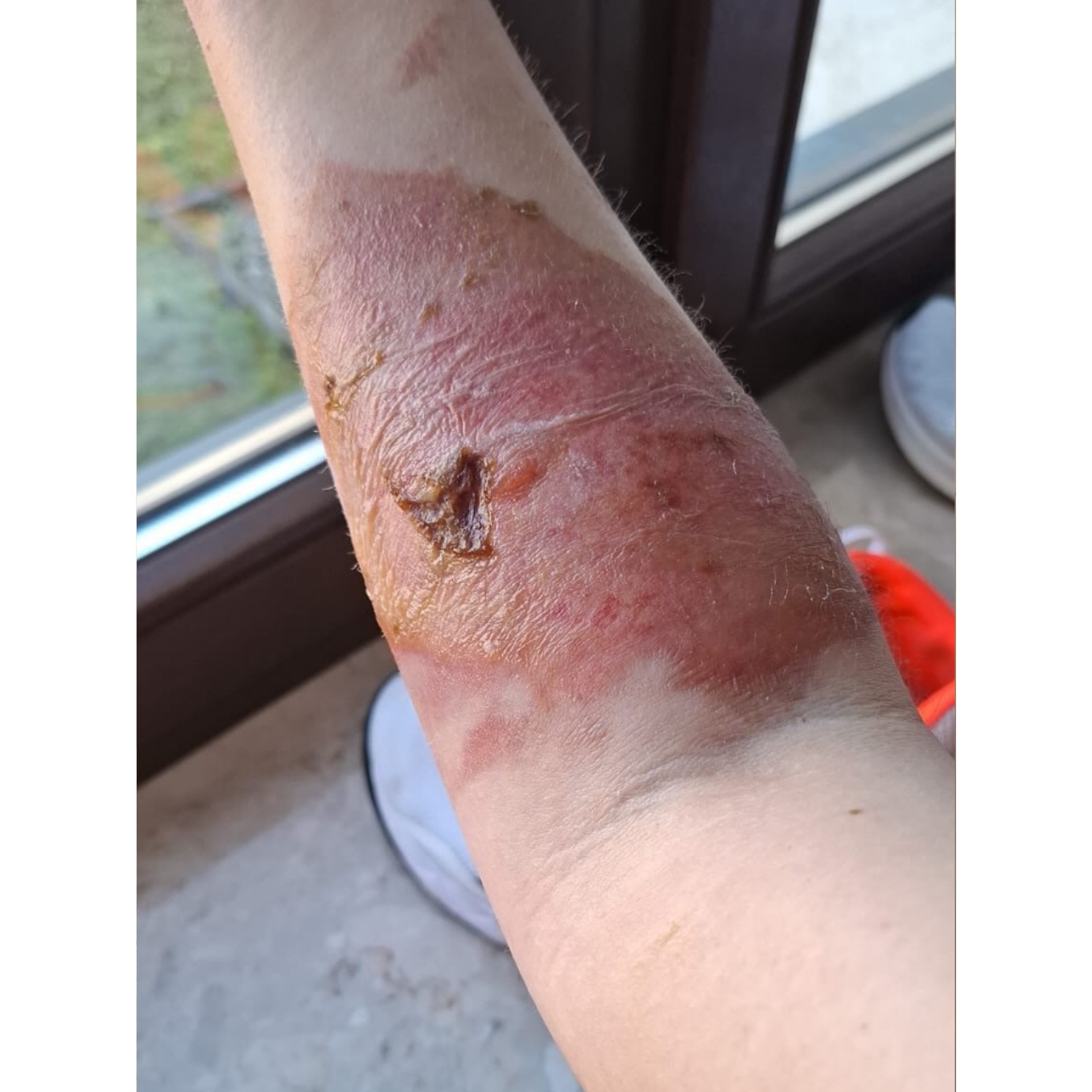 The following case describes the complete recovery of a 28-year-old woman from a deep partial-thickness scald burn to the forearm. The injury occurred in March 2025 and was treated exclusively at home by her mother-in-law, Anna Zukowska, a retired nurse with wound-care experience using black seed oil. Healing was complete within one month, with normal skin appearance restored by three months.